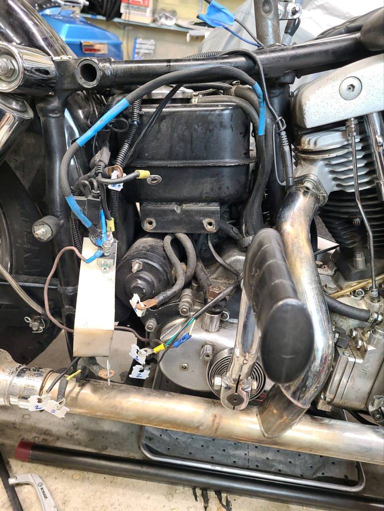 So the left side of the bike is almost ready to go, except to finish wiring the coil. I’ll get after the right side tomorrow. Got to reinstall the battery box, and the starter relay – which I’m replacing. Then install the points in the cone. Hoping to get all that done tomorrow. Then I have some other electrical that I want to clean up, and I need to make sure I update my wiring diagram with accurate info.