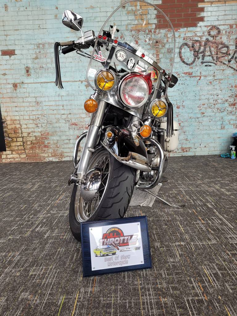They said that even though there were only two bikes there (well one and a trikey thing with a VW motor), mine was prize worthy, regardless. Lol! Atomic wins her first trophy. I was hoping she wouldn’t be so angry, but she rode like crap on the way home. Snotty brat.