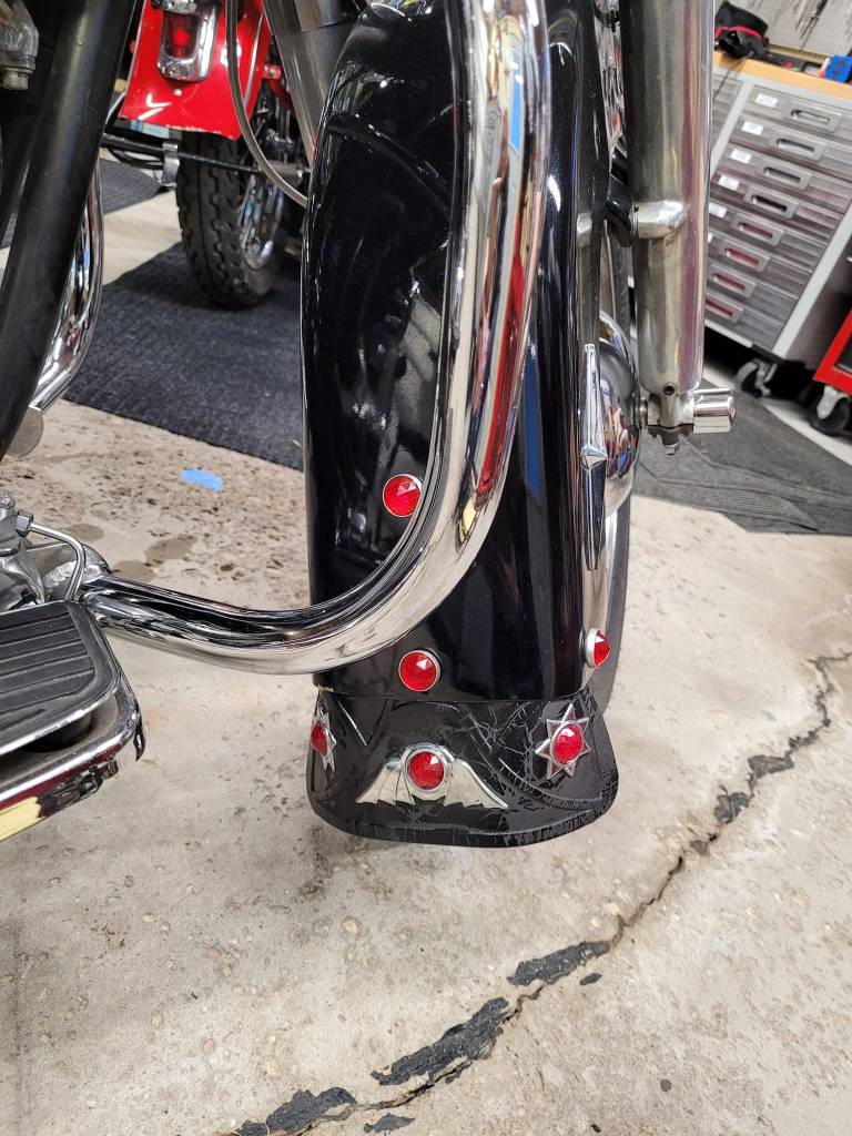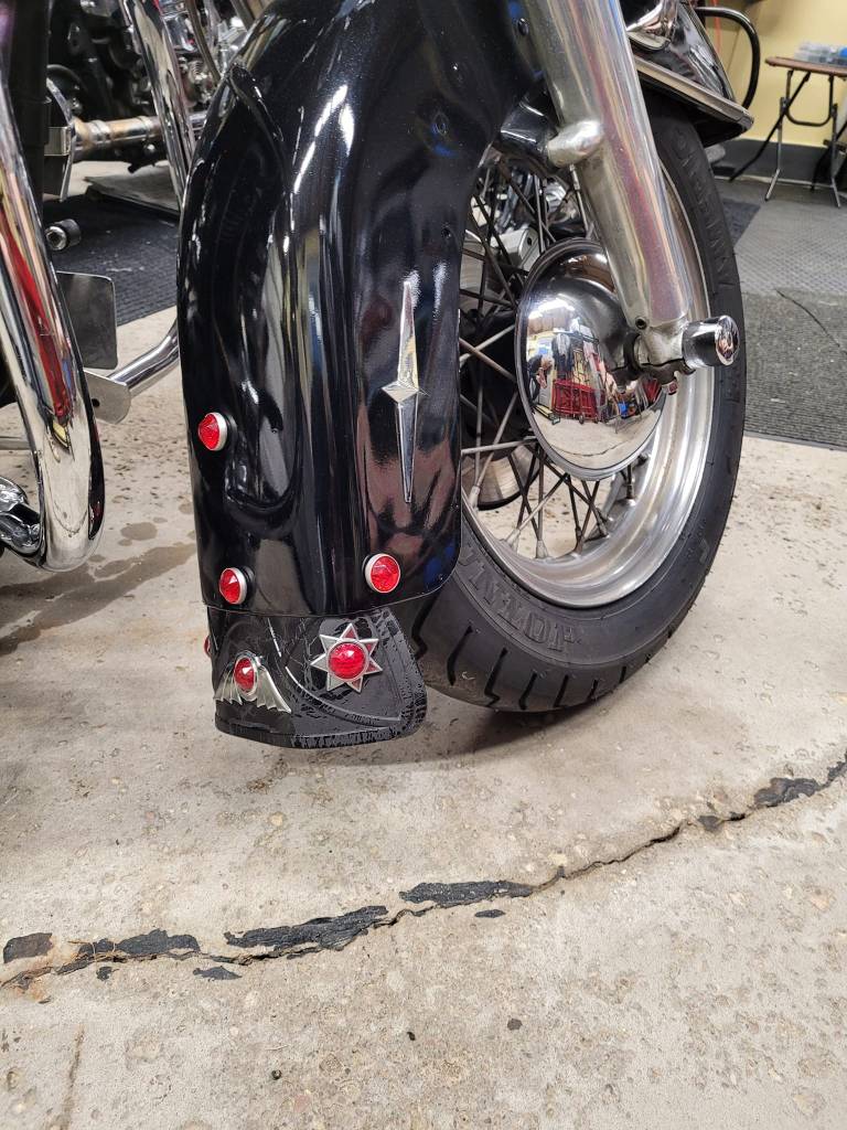 The rear fender took forever… I wanted to keep the fender tip, so I integrated that into the whole situation, which complicated things a bit, but I am happy how it turned out. The front fender took no time at all, which was a relief! Pretty happy with the additional decorations!