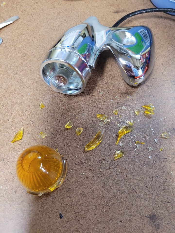 Case in point: the tailgunner lights mounted on the front fender. One of the bulbs blew not long after I installed the lights, which is just bogus, but I just ran them anyway. The light is next to impossible to get apart and even MORE impossible to press back together. This is how it went: