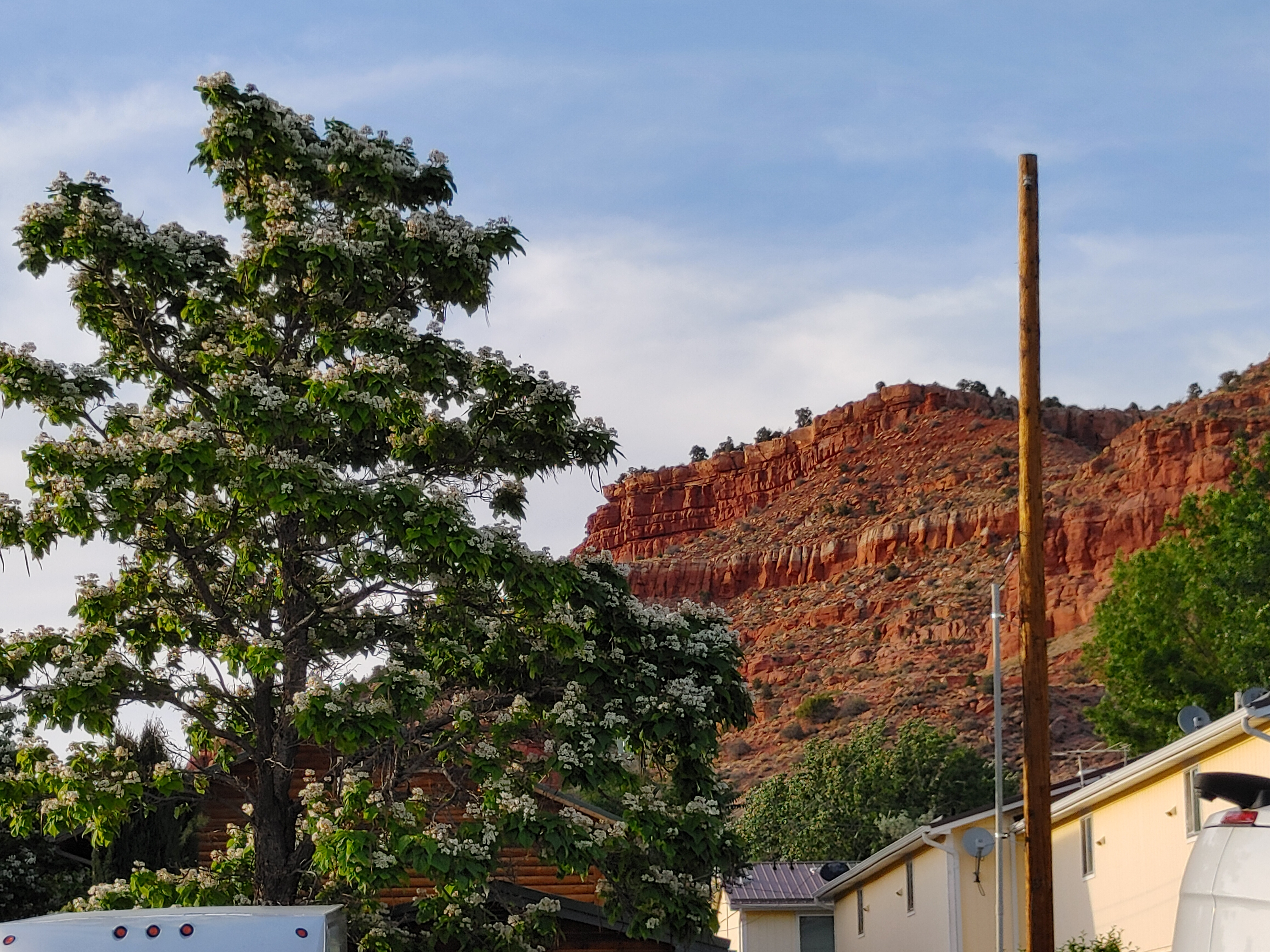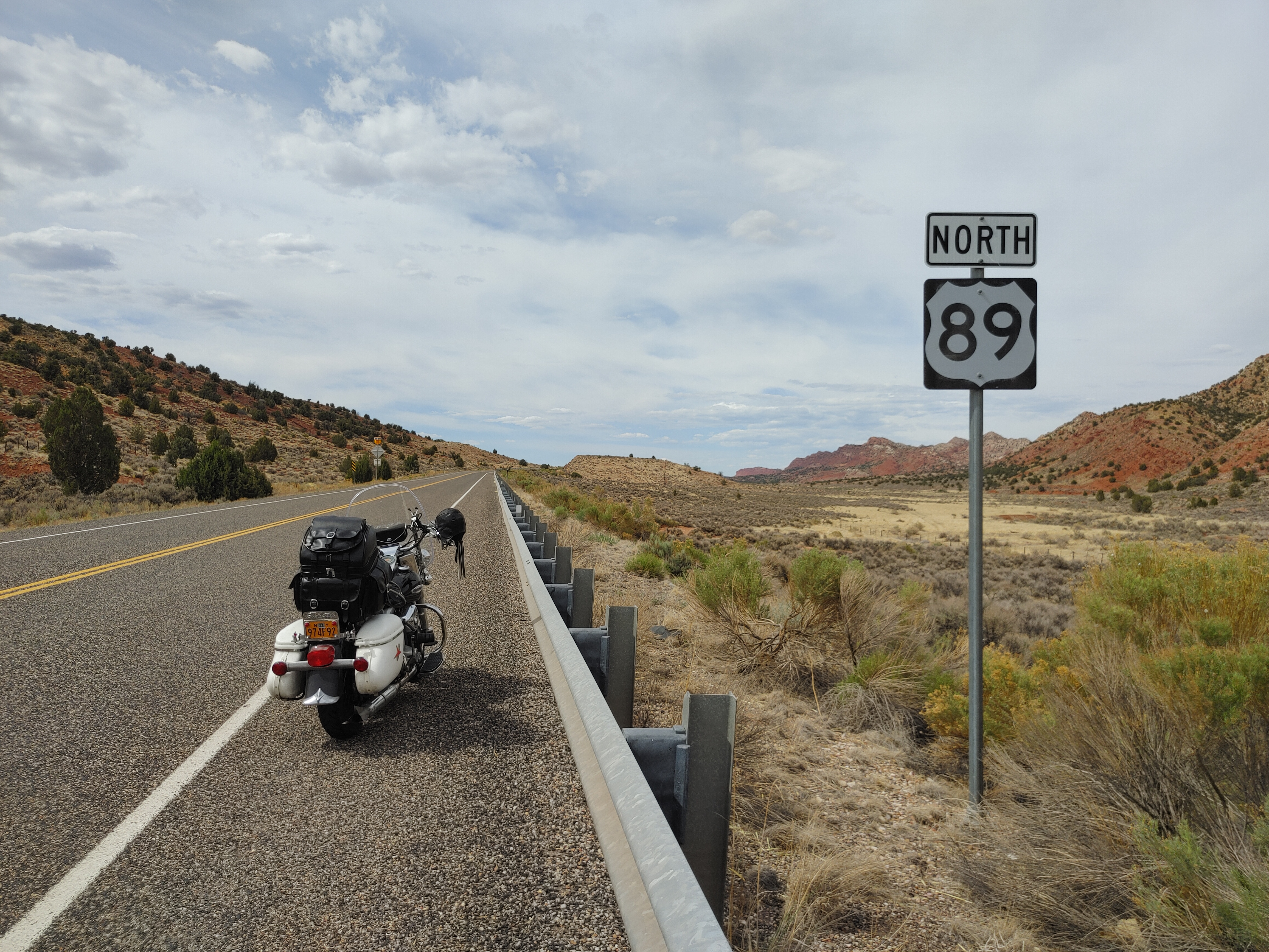 My luggage broke on the way to Utah as I was navigating the rough NM roads, and today it is even worse. I wondered why my bike felt wonky when I was in curves. At my last gas stop, I checked my pack and it had sunk some more, so it was loose on the luggage rack. I changed how I had it strapped and it was much better after that. Probably time for a new pack…