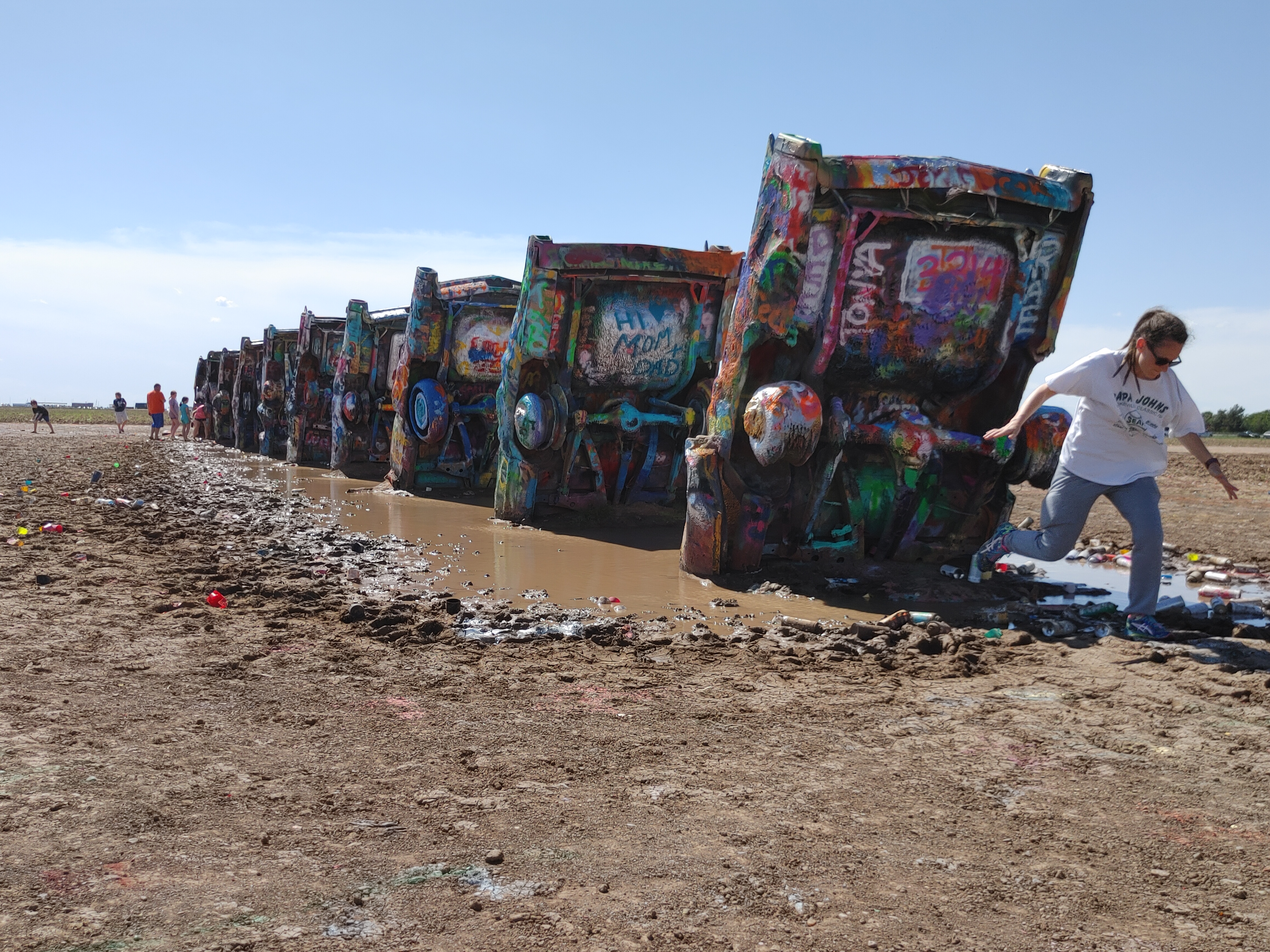 At my last gas stop in Oklahoma, I really missed the perfect photo op. A guy rolled in driving this ’90s sedan with all these antennas on it, and a graphic on the side saying ‘Storm Chasers.’ He was tall and thin, wore a lot of plaid and brown. Had a frizzy, curly mop of hair and thick plastic glasses frames straight out of the ’70s. Reminded me of Ghostbusters! 🤣