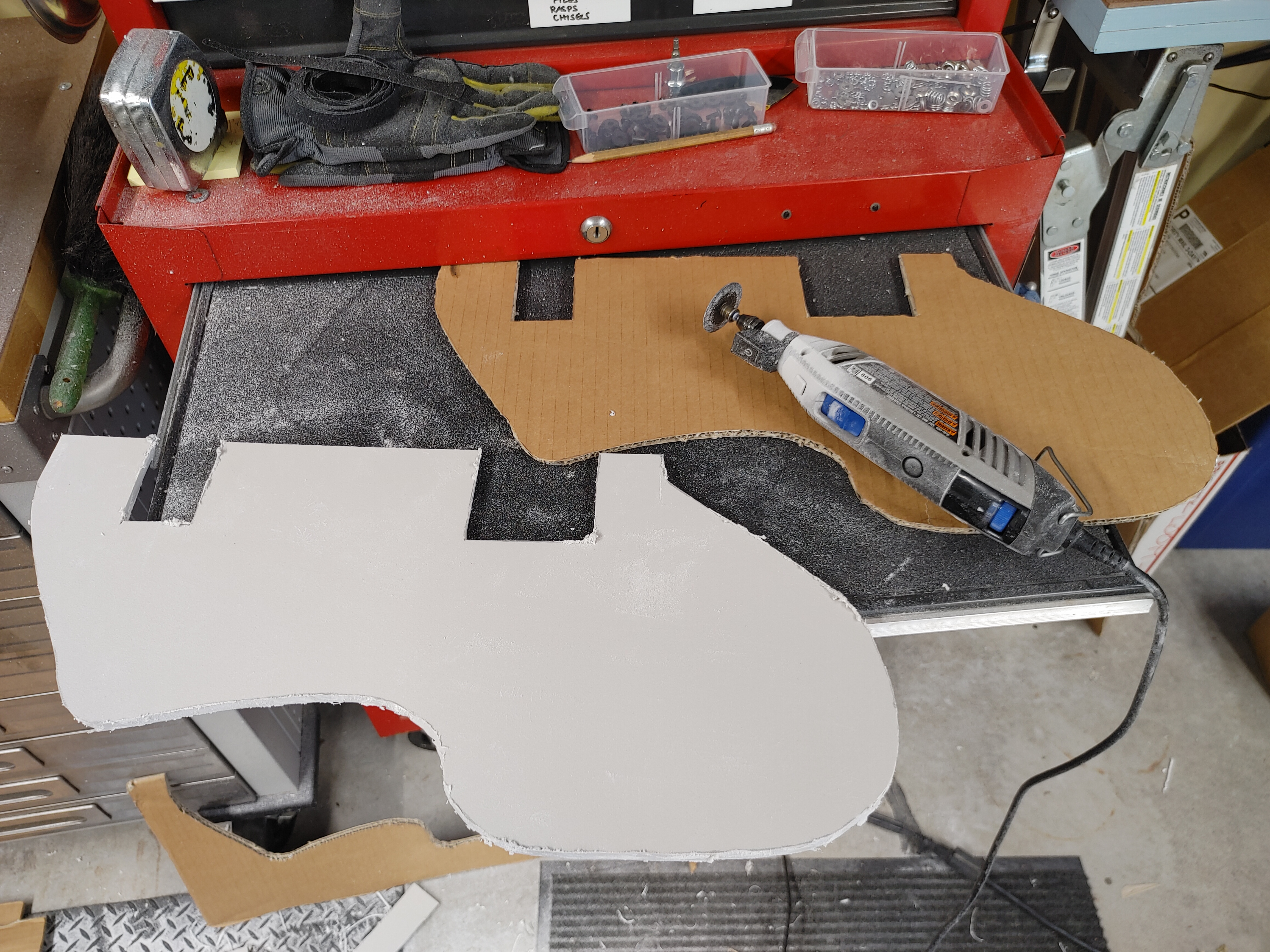 Tool holders from basic cutout to final installation in the bubble bags.