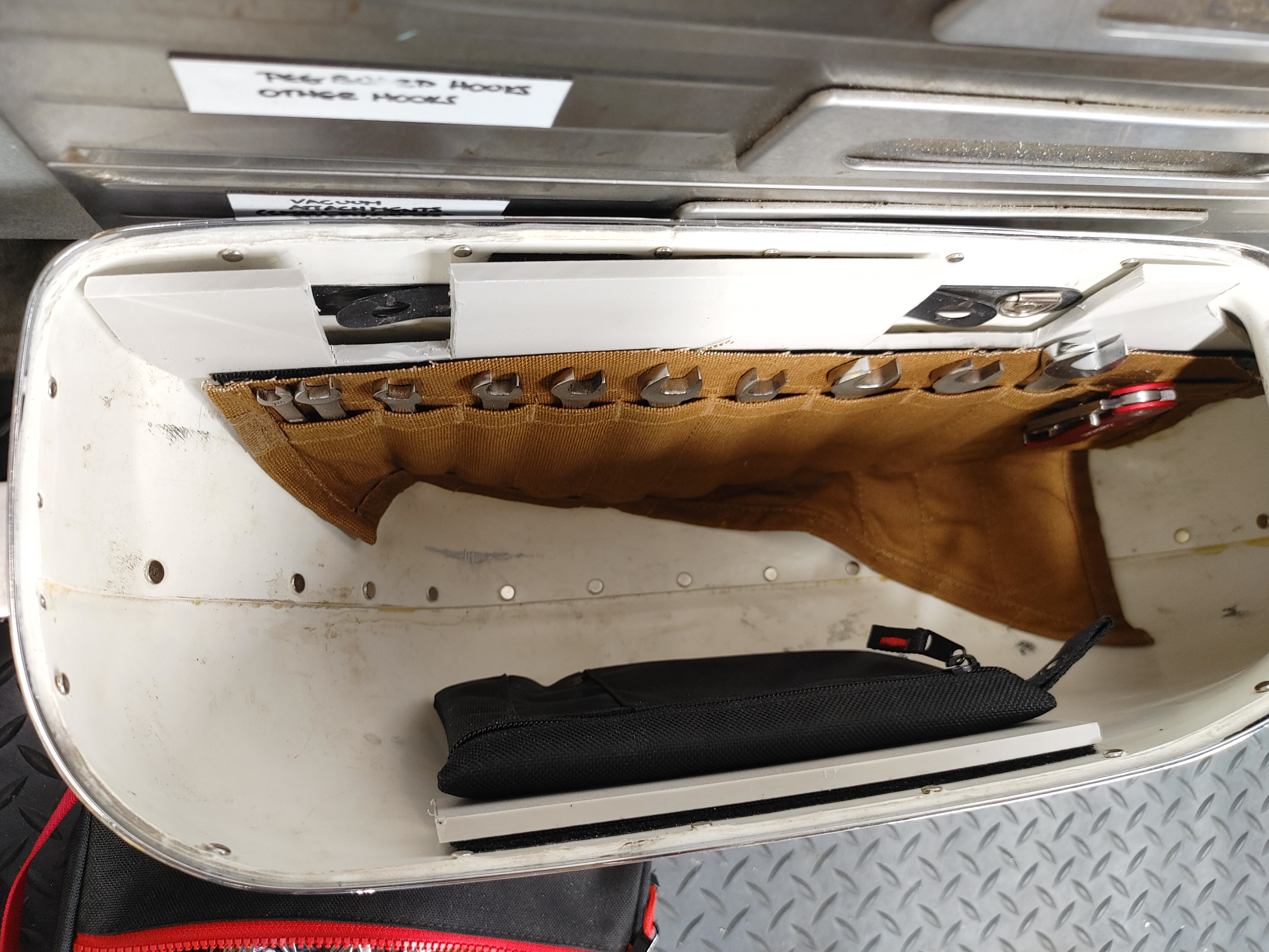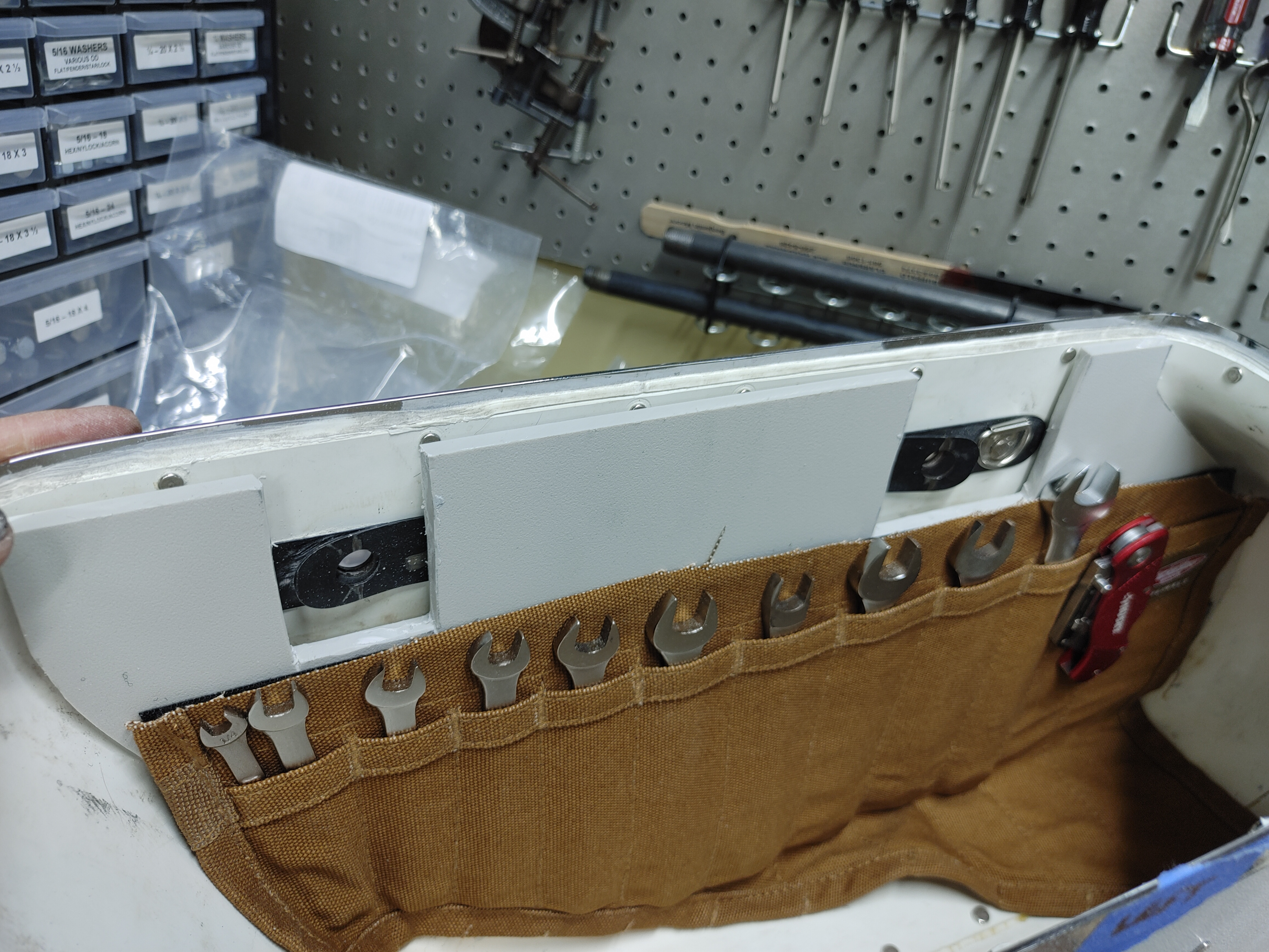 Prepping the Atomic Shovel for a 5,000 mile trip to Utah. Even with a rebuilt motor, I am taking tools. When I traveled on this bike in 2019, tool storage in the bubble bags was quite the challenge. They are a funky shape, and I hated that the tool rolls were bouncing around in the bottom of the bags, which are somewhat fragile. Worse yet, when I did have to work on the bike, I would have to unpack BOTH bags to get at all the tools I needed. There had to be a better way…. Tonight I just finished a set of tool storage inserts for the bubble bags. My first run at this idea was with the leather bags on my ’73. That worked out pretty well, but I found what I think are some better strategies for securing the tools, so I tried them out on the Atomic bags. I will have 5,000 miles to learn whether or not they really work.