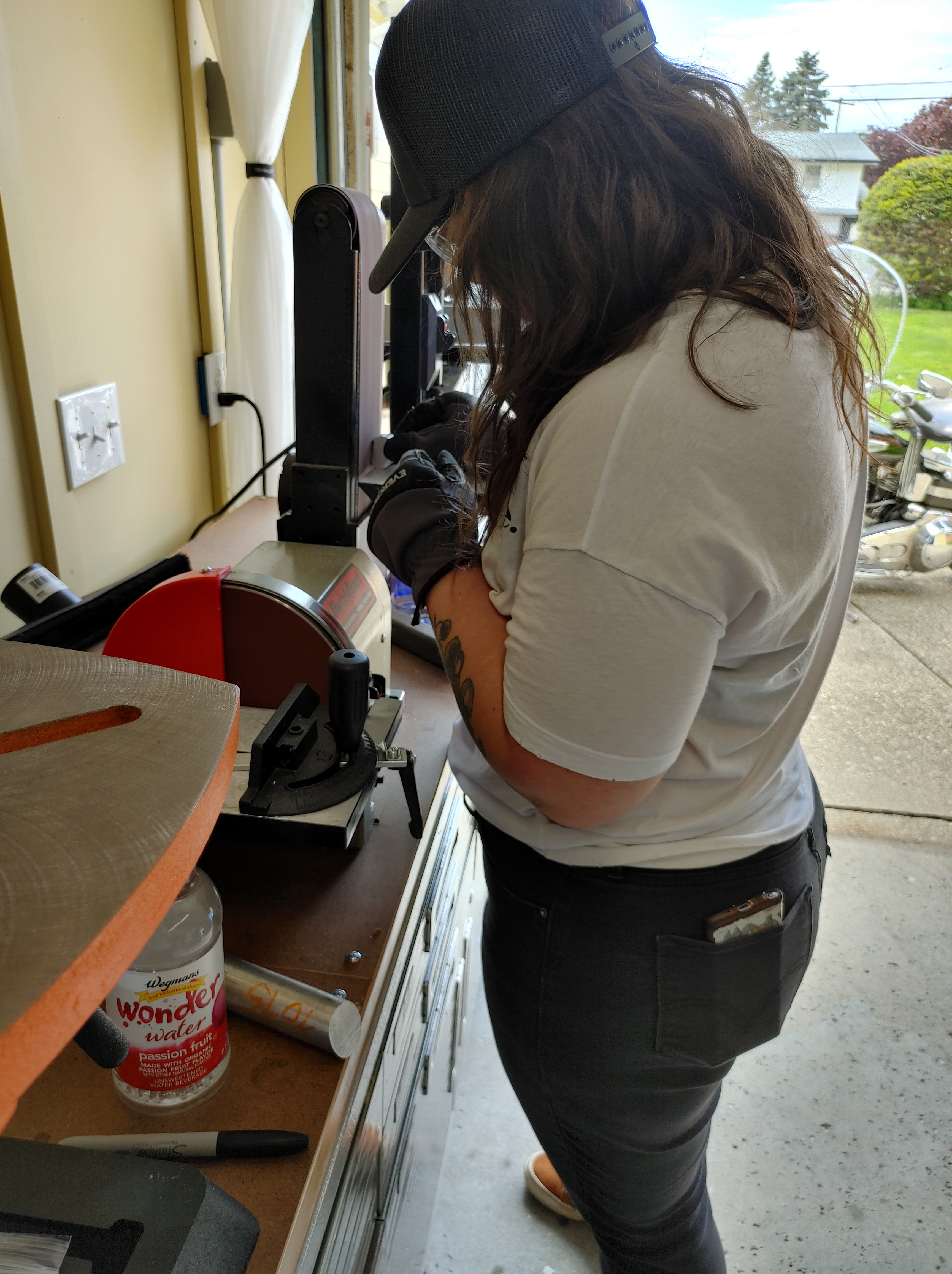 I needed a 20 degree perch for my fender ornament, so I swiped some aluminum from my old job, and enlisted Anna Szafranski to help me make it happen. She’s in a machining program, and I thought it would be cool to have a little piece from her hands on my bike. So yesterday, she popped by and got the perch made. Today I drilled it, and had to cut a D shaped hole in one side. Then I drilled the fender and mounted the fender ornament! I am SO HAPPY!!! Almost ready to bolt the fancy pants fender up to the bike….