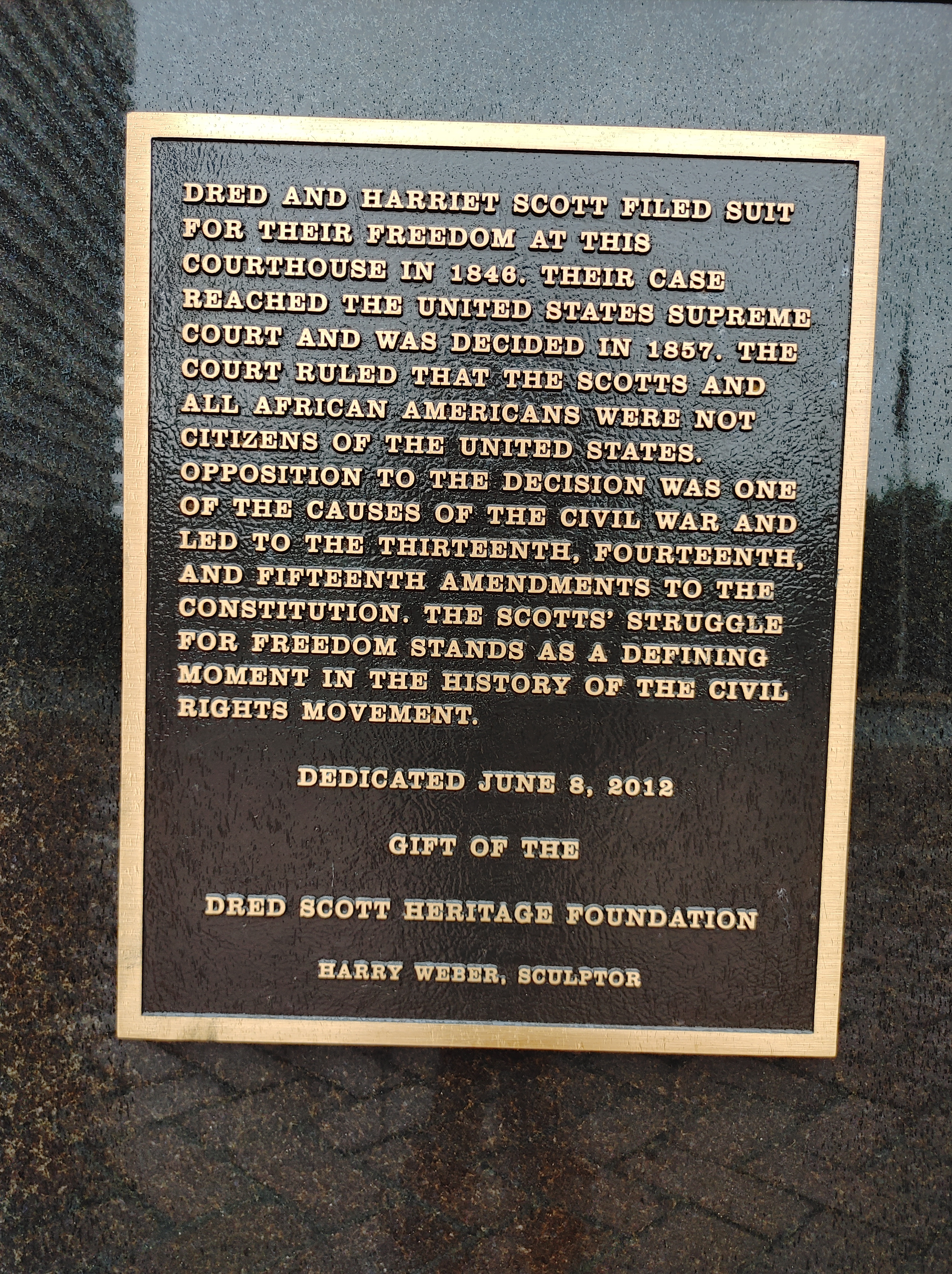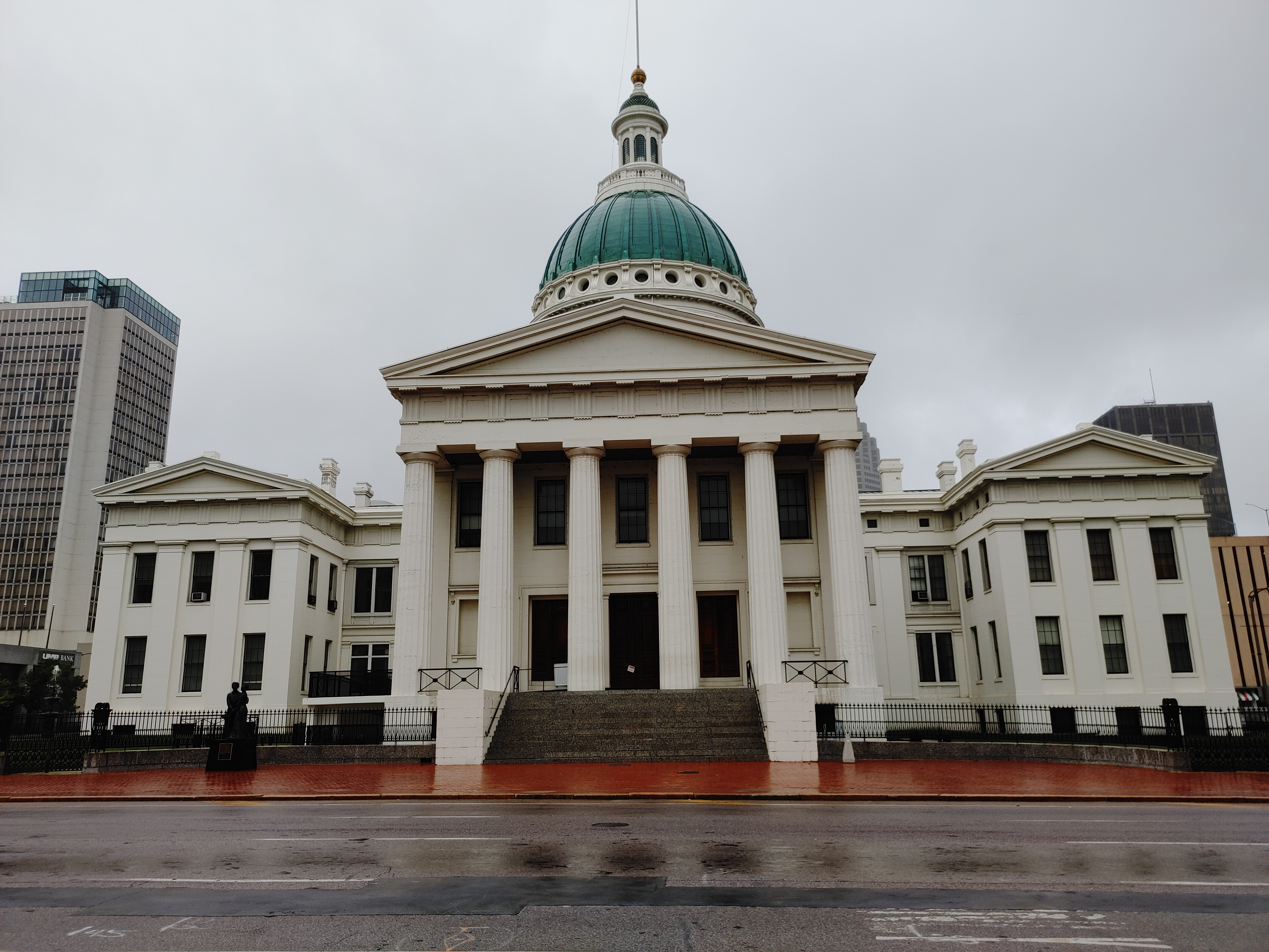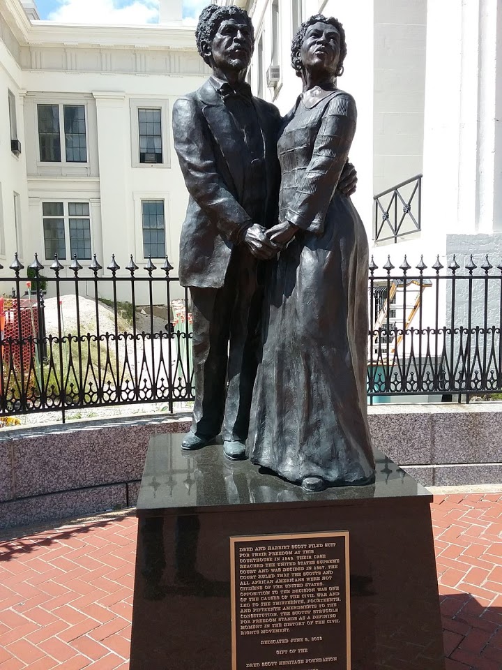 Today. Today was the kind of day that riding is all about for me. This doesn’t mean it was perfect. When I tried to start the bike this morning, the starter button wouldn’t work. I figured something in the ignition might still be soaked from the pressure washing the bike took yesterday. No matter. Pulled out a screwdriver, bridged the solenoid posts and she cranked right over. Yes! And of course, the weather absolutely sucked yet again. Rain again this morning for the first 100 miles. Not the wrathful stuff of the last two days – more like a steady, relentless drizzle. Like the last tears of a 2-year-old after an epic tantrum. They just won’t stop. But once they did stop… Wind. COLD wind. I had 20-30 mph winds – often a head wind that made acceleration and holding speed rough – but sometimes a cross wind, which made holding a line with that crate of a bike a little sketchy as well. REGARDLESS…. I got to ride portions of Route 66 today! ROUTE 66 baby!!! The Mother Road. The mystical, mythological, magical road to beat all roads. I have wanted to do Route 66 from end to end (as much as it is currently possible) for as long as I can remember. So tracing just portions of it today was so exciting. I did not have time to stop and take pictures, but the taste I got has inspired me to do the entire road, end to end. It has moved to the top of my list. Since it was drizzling this morning, and i was in no hurry to leave, I took a stroll to the Arch and took some photos. Opposite the arch was an old, government-looking building with a statue in front. I walked over to see what it was, and to get another shot of the arch. Turns out it was an old courthouse. The courthouse where the Dred Scott trial was held. I am embarrassed to say I had to read the plaque to recall the significance of the trial. The trial rendered the devastating ruling that African Americans were not U.S. citizens. It was appealed all the way to the Supreme Court, which upheld the lower court’s ruling. So my day was bracketed by history – the shameful renunciation of freedom, and the exuberant freedom of the road. THIS is why I wanted to do this trip. I wanted to bump into things that made me feel, made me think. They aren’t all good. They aren’t all bad. But they all inspire me to do better, be better, appreciate everything I have, and love the people around me.
