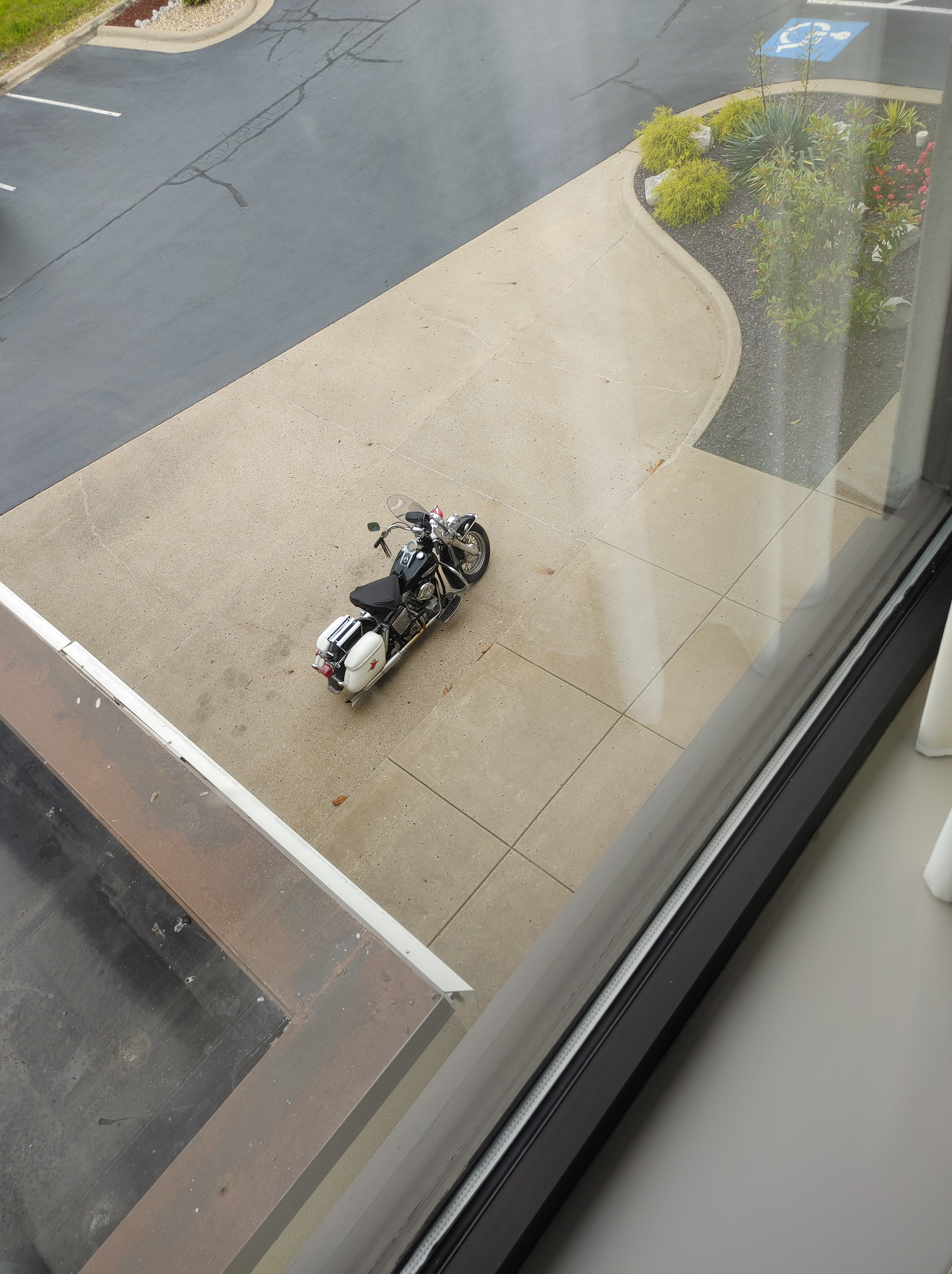 Because I have not landed yet… I had to wait a bit this morning for fog to burn off, but once it did, it was a beautiful ride thru southern Ohio and then southern Indiana. Missi DeBord Shoemaker and I were going to try to meet up when I passed through the Indy area, and she gave me a way nicer route through her state. Some windy roads, mixed with some nice straight ones, I made great time. Unfortunately she couldn’t make the meetup, but hopefully on my way back through. Lulled into the bliss of the roads, and a bike that was finally behaving, I was starting to relax out of the ball of anxiety I have been getting ready for this trip. Sadly, it was short lived. Heading down a 90 mile stretch of route 50 in southern IL, and the skies turned Wicked Witch of the West black. I had already been dealing with a heavy head wind, so I pulled off the shoulder and geared up. Bsck on the bike it dawned on me that I forgot to cover my seat and luggage, but there was a gas station – apparently the last outpost of humanity – so I rolled in, topped off my tanks, covered luggage and seat… Back on the road. The rain started almost immediately. Splat, splat, pause, splat, splat…. And then it all came down at once. I have never ridden in such bad rain, and I have done a lot of rain. It was so bad, my rain jacket failed. My T-shirt was soaked. I could not see anything but the white line to my right. There was nowhere to pull over – no way I was turning back. I did 15 miles at about 40mph white knuckling it. I kept to the right side of the lane, and just pressed on. Finally the rain let up a bit, and I was able to speed up to 50. But it started getting bad again, and by some miracle, I spotted a motel with an AWNING!!! Careful right turn in, and here I sit. There have been probably 20 emergency vehicles that have flown by in the opposite direction. Thankfully they are not for me. 🙏🏼🙏🏼🙏🏼 I am just going to wait this one out. Holy crap what a storm! In the south we called these frog stranglers… And I definitely felt like a strangled frog!